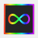 Simple rainbow gradient colour infinity mathematical symbol with border accents.