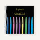 Rainbow Ink Pens Kid Black Sketchbook with Name Notebook