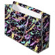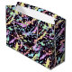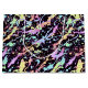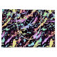 Retro 90s vibe of energetic graffiti splashes and a faux-holographic soft foil-y rainbow gradient.