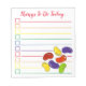 List-style to do list checklist note pad design features an original marker illustration of rainbow jelly bean candies. Just personalise with your information.