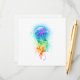 Large, iridescent, artistically drawn, bright jellyfish, with long tentacles on white, painted over with multicolored watercolor background. Rainbow jellyfish.