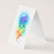 Large, iridescent, artistically drawn, bright jellyfish, with long tentacles on white, painted over with multicolored watercolor background. Rainbow jellyfish.