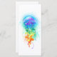 Large, iridescent, artistically drawn, bright jellyfish, with long tentacles on white, painted over with multicolored watercolor background. Rainbow jellyfish.