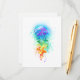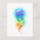 Large, iridescent, artistically drawn, bright jellyfish, with long tentacles on white, painted over with multicolored watercolor background. Rainbow jellyfish.