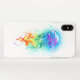 Large, iridescent, artistically drawn, bright jellyfish, with long tentacles on white, painted over with multicolored watercolor background. Rainbow jellyfish.