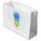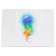 Large, iridescent, artistically drawn, bright jellyfish, with long tentacles on white, painted over with multicolored watercolor background. Rainbow jellyfish.
