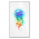 Large, iridescent, artistically drawn, bright jellyfish, with long tentacles on white, painted over with multicolored watercolor background. Rainbow jellyfish.