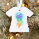 Large, iridescent, artistically drawn, bright jellyfish, with long tentacles on white, painted over with multicolored watercolor background. Rainbow jellyfish.