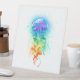 Large, iridescent, artistically drawn, bright jellyfish, with long tentacles on white, painted over with multicolored watercolor background. Rainbow jellyfish.