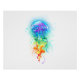 Large, iridescent, artistically drawn, bright jellyfish, with long tentacles on white, painted over with multicolored watercolor background. Rainbow jellyfish.