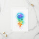 Large, iridescent, artistically drawn, bright jellyfish, with long tentacles on white, painted over with multicolored watercolor background. Rainbow jellyfish.
