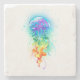 Large, iridescent, artistically drawn, bright jellyfish, with long tentacles on white, painted over with multicolored watercolor background. Rainbow jellyfish.