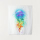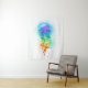 Large, iridescent, artistically drawn, bright jellyfish, with long tentacles on white, painted over with multicolored watercolor background. Rainbow jellyfish.