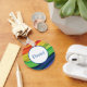 This keychain is shown in a colourful rainbow print design with a sample name, customise this item and change the sample name to yours.
