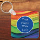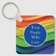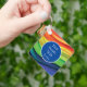 This keychain is shown in a colourful rainbow print design with a sample name, customise this item and change the sample name to yours.