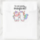 Celebrate love and cuteness with these fun square kissing rainbow unicorns 'You make everyday magical'. Features two rainbow hair unicorns, one kissing the other on the cheek. Saying reads 'You make everyday magical'. A cute addition to any packages, letters, gifts, etc. Can add a special touch to any gift bags or party favours.