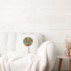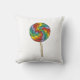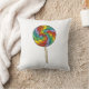 Throw pillow features an original marker illustration of a rainbow striped lollipop candy.