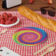 Round colourful, if you insert a toothpick, pencil or other stick on its edge, you get a novelty item.