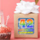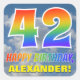 This exciting, eye-catching, and vibrant birthday-themed sticker design features a cloudy blue sky pattern background, a large number "42" and "HAPPY BIRTHDAY," both having a multicolored rainbow spectrum inspired gradient pattern, and an editable name. Colourful and happy stickers like this might be a fun gift for somebody who is celebrating their 42nd birthday. [~Z0000374]