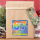 This fun, exciting, and vibrant birthday-themed sticker design features a blue sky with clouds pattern background, a large number "67" and "HAPPY BIRTHDAY," both having a multicolored rainbow spectrum inspired gradient pattern, and a custom name. Fun and colourful stickers like this might be given as a gift to somebody who is celebrating their 67th birthday. [~Z0000374]