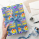 This fun, exciting, and eye-catching birthday-themed wrapping paper design features a blue sky with clouds pattern background, a large number "98" and "HAPPY BIRTHDAY," both having a multicolored rainbow spectrum inspired gradient pattern, and a custom name. Birthday themed wrapping paper like this might be a fun way to wrap a gift or present being given to somebody who is celebrating their ninety eighth birthday. [~Z0000372]