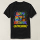 The front of this exciting, fun and eye-catching birthday-themed shirt design features a colourful pattern inspired by celebratory fireworks, along with the message "HAPPY 57TH BIRTHDAY" featuring a multicolored rainbow like gradient pattern, and a customisable name coloured yellow. A happy, fun shirt like this might be worn by the guests at a birthday party being held in celebration of somebody’s fifty seventh birthday. [~Z0000356]