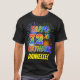 The front of this exciting, vibrant and eye-catching birthday-themed shirt design features a colourful pattern inspired by celebratory fireworks, along with the message "HAPPY 72ND BIRTHDAY" having a multicolored rainbow like gradient pattern, and a customisable name coloured yellow. A fun, happy shirt like this might be worn by the attendees at a birthday party being held in celebration of somebody’s 72nd birthday. [~Z0000356]