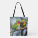 Carry a piece of nature with you wherever you go with this vibrant tote bag featuring two stunning rainbow lorikeets perched on a branch. Their vivid plumage in shades of green, blue, yellow, and red captures the charm and brilliance of these iconic birds.