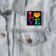 A simple but bold, Love text design accented with a heart and gradient rainbow colours. Show some love anytime and it's also a fun design for Gay Pride Month in June! Shown here on a customisable square button with a black background. Add your own custom message and choose your favourite background colour if desired.