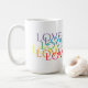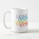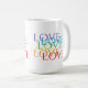 The design on this RAINBOW LOVE tall white ceramic mug is the word "LOVE", in rainbow colours, repeated six times, overlapped in a casually pleasing way. * Other mugs, and matching products are in the COLORS category of my shop. ** If you'd like to transfer this design to another product type, shape, or size, please check my shop first to see if I have one already done, because I'll have fiddled with it to make the design fit just right and it will save you the bother. Sometimes designs transfer ok, sometimes they don't. Just fyi.