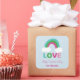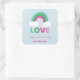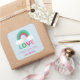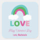 This fun, whimsical Valentine’s Day sticker is perfect for sealing cards and attaching to classroom exchange gifts. Featuring a whimsical rainbow with “Love” underneath. Pre-fill with your child’s name or delete the field to allow them to write in their own name. Shown in a light blue background