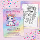 Make your little one's 7th birthday extra magical with this whimsical rainbow unicorn-themed invitation! Featuring a pastel chibi unicorn with a flower crown and sparkling accents, it’s the perfect way to set the tone for a fun and colourful celebration. A large rainbow-coloured "7" makes the design pop, and the back includes a bonus unicorn colouring page.