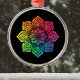 This colourful rainbow mandala on black design will add mystery and colour to your holiday decor or any ornamental display.