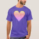 I give wanted to give this a 4 instead of a 5 because these Basic DARK T0shirts run unexpectedly SLIM or Narrow. Which is great if you do not have a potbelly, but I have a paunch. It isn't the shirt's fault that I've got a beer belly. The design and shirt itself is a quality cotton shirt. The color is more of a deep purple, but still a very pretty color. The Basic DARK T-shirts run a bit SLIMMER than the Basic Ts. The neck is a fraction narrower (or seems to be narrower) also. I'm a paunchy middle-aged woman and my neck is 12 inches (31cm) thick and the neckline fell about the same as in the photo of the man, and I had the desire to tug it a bit. So if you're a thick necked man or like loose shirts, be aware these are slimmer shirts. Once I get rid of my lockdown paunch it'll look great. The shirt washed well in cold water with no apparent bleeding. We don't have a dryer, so it hung dry. Did not shrink. Love the colors and the design. The design looks smaller on my shirt than it does on the model on-line. But still, it looks good on the shirt. The printing looks as it does on the model, just the size seems fractionally smaller. Washed garment in cold water, hung dry and design appeared unaffected.