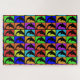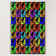 This ocean-inspired jigsaw puzzzle design contains the silhouettes of dolphins presented in a large matrix of muti-colour rectangles, including turquoise, yellow, orange, red, purple, and royal blue. If you're a beach lover or have a passion for these amazing intelligent sea mammals, this puzzle might be just the right fun challenge.