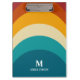 Rainbow Monogram Custom Name Retro Sunset Stripe Clipboard