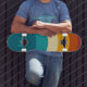 Rainbow Monogram Custom Name Retro Sunset Stripe Skateboard