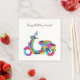 Add a bright and cheery personalised touch to your next party with these paper napkins that are ready to be customised with your own message. They feature an illustration of a classic motor scooter or moped in vibrant rainbow colours with your text above in modern, black script lettering. The fun design works will for parties for women and teen girls.