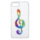 Polygonal, rainbow, bright musical key on white background. Polygon tattoo. Treble clef