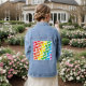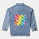 A cute multicolor rainbow musical notes pattern eighties inspired retro aesthetic stationery style music lover adorable happy design denim jean jacket. Get a cute and colourful notes denim jean jacket today.