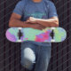 Colourful skateboard featuring a messy spray paint splatter effect, this vibrant green board is perfect for a teen or tween with a bold personality, for both son and daughter's of all ages, Check out my shop for more colours designs and products.