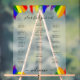 Acrylic LGBT seating chart with rainbow paint strokes and a transparent white background. Seating chart for an LGBTQ wedding with pride flag brushstrokes. Lesbian wedding seating chart with brushstrokes in the colour of the pride flag. Gay wedding seating chart with charming fonts and paint strokes in pride colours.