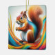 Brown Squirrel sitting up on a wavy rainbow abstract surface, with similar colours on its back. Same image horizontally flipped on the back.