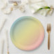 A rainbow full of pastel colours decorate this set of paper plates. Colours of pink, green, blue, yellow, light purple etc. Also available in matching napkins, and kitchenware accessories. Great for a picnic on a beautiful day.