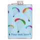Rainbow parachutes on pale sky blue - paraglider hip flask