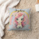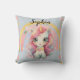Rainbow Pastel Blue Kawaii Unicorn With Name Cushion