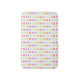 A pattern of rainbow circles in pastel multi colours. They are all in different shapes and sizes, and arranged into a retro look pattern.