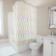 A pattern of rainbow circles in pastel multi colours. They are all in different shapes and sizes, and arranged into a retro look pattern.