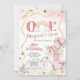 Rainbow Pastel Unicorn First Birthday Invitation, One Magical Year Girl Birthday invite, Editable Pink Bow Kids 1st Birthday Party