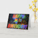 The front of this eye-catching, exciting and vibrant greeting card design features a colourful celebratory fireworks inspired pattern, along with the message "HAPPY 4TH BIRTHDAY!" having a multicolored rainbow inspired gradient pattern, on a black coloured background. The inside features a personalised greeting message, or could perhaps be cleared and left blank if it is desired to write a message by hand instead. A greeting card like this might be a happy, fun way of sending a greeting message to somebody who is celebrating their fourth birthday. [~Z0000355]